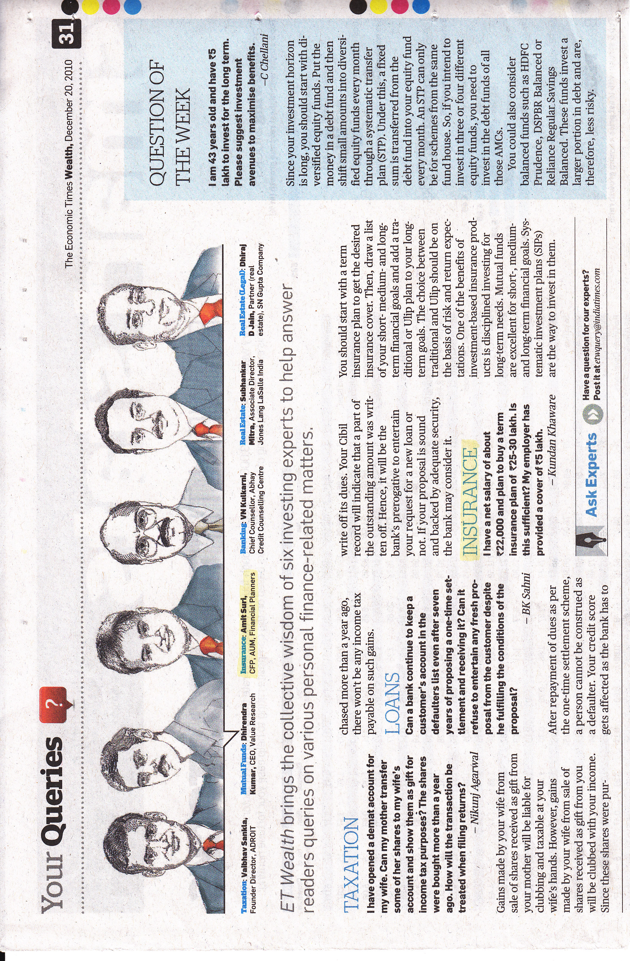 Insurance Query Corner in Economics Times |